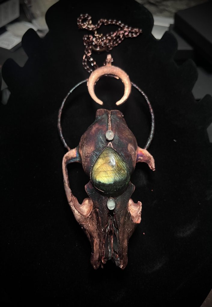 Olen vuosia kerännyt luita ja kummallisuuksia eri puolilta maailmaa ja nurkissa alkoi pyörimään niin sanotusti ylimääräisiä luita. Päätin alkaa valmistamaan näitä koruja itselleni, mutta kuten useimmat muutkin asiat, se karkasi käsistä.